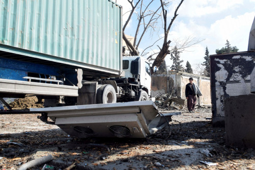 Outside a damaged shop, private security guard Jamil Ahmed Mashwani said attackers struck shortly after midday. “They hit me on my face and head.”